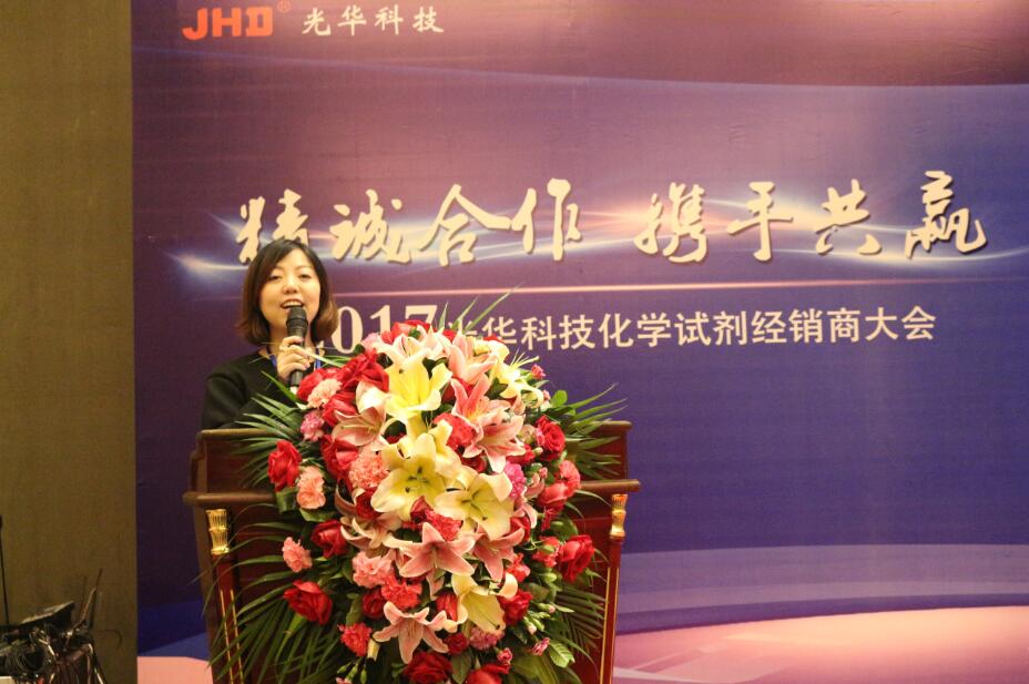 隨后,營銷中心相關同事向在座經銷商朋友們介紹了公司近期的運營狀況:在化學試劑領域,光華科技一直位居國內十強,試劑產品廣泛用于電子、食品、醫藥、日化以及其他行業的生產和研究等方面,如今更是建立了產品完備、服務便捷的電商平臺(www.jhd.com.cn)。