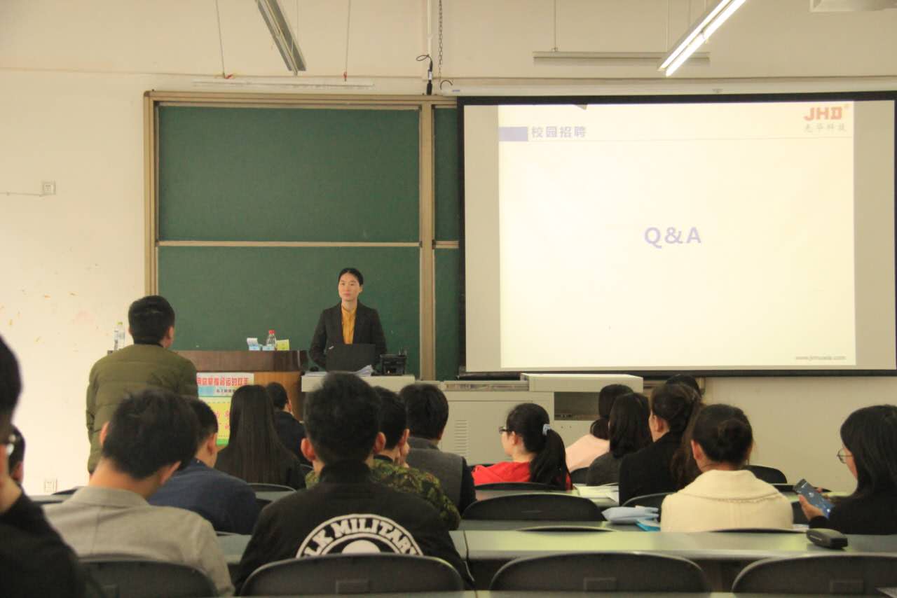 在熱烈的交流氣氛中,光華科技人力資源同事向同學們介紹了公司在研發、技術、生產各方面的實力,以及公司歷經30多年發展形成的企業文化及“誠信、關懷、勤奮、上進、學習”的用人理念,并一一回答了同學們熱心的提問。
