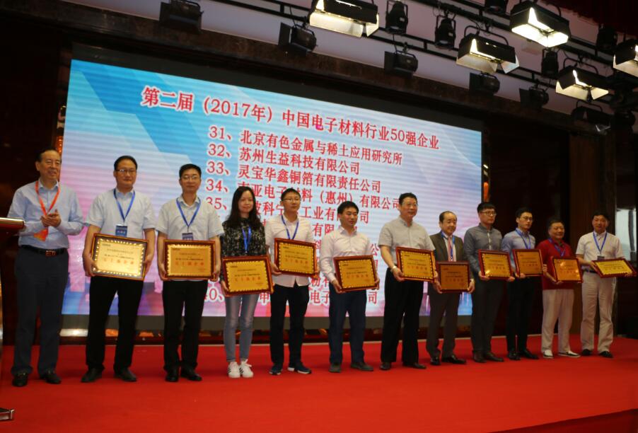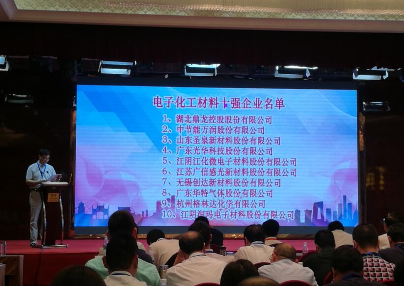 大會重磅發布了第二屆(2017年)中國電子材料五十強企業,以及相關電子材料專業十強企業名單。光華科技憑借在專用電子化學品領域的突出表現,光榮入選中國電子材料五十強,并被評為電子化工材料十強企業!