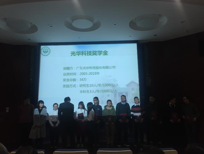 近日,一年一度的中山大學化學學院捐贈獎學金頒獎典禮如約舉行。光華科技現場見證了莘莘學子們的優異表現,并為獲得光華科技獎學金的學子們頒發獎勵,勉勵大家再接再厲,爭取獲得更大的進步,成為化工行業的棟梁之才。
