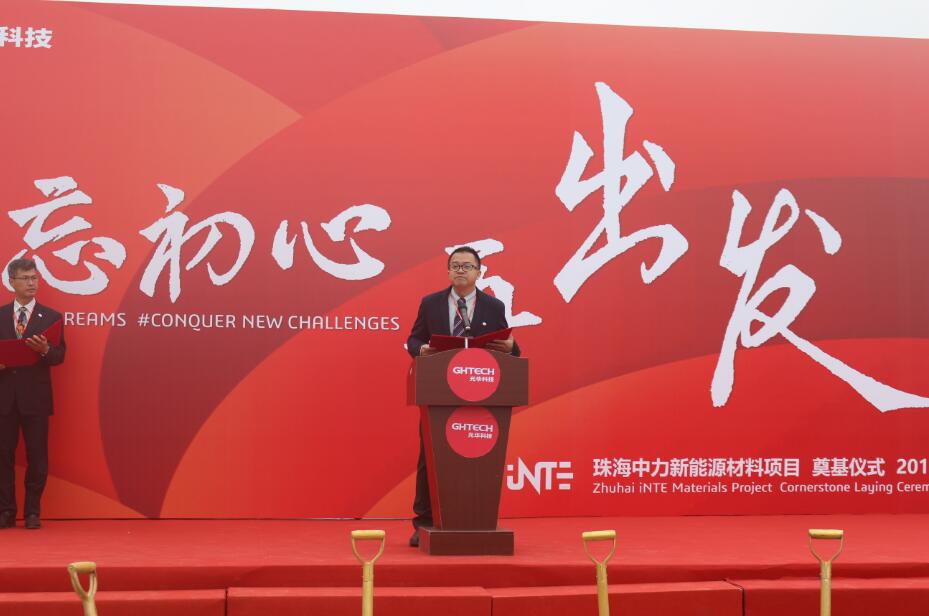 珠海中力新能源總經理章明博士對參加儀式的各位領導及來賓表達了最熱烈的歡迎及衷心的感謝。在高欄港管理委員會及社會各界朋友們的大力支持下,珠海中力新能源材料項目目前已具備開工條件,首期占地面積6.7萬平方米,預留二期項目用地10萬平方米,規劃第三期用地16.7萬平方米,擬建設成為年產鋰電池材料5萬噸,PCB電子化學品5萬噸,化學試劑2萬噸的綜合性產業基地。