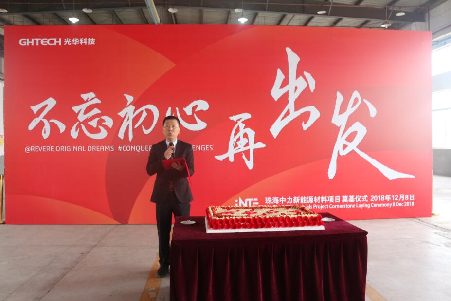 在熱烈的氣氛中,光華科技董事總裁鄭靭先生表達了公司對中力新能源項目的殷切期望,勉勵大家再接再厲,持續傳承老一輩光華人艱苦奮斗的精神,為光華科技新能源領域發展戰略目標的實現而努力奮斗。