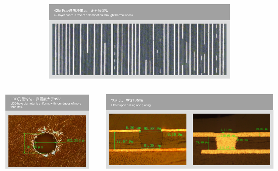 棕化是銅面在微蝕反應(yīng)中,緩蝕添加劑會選擇性吸附在銅表面,從而在銅表面形成均勻的蜂窩狀微觀結(jié)構(gòu),增加比表面積,使壓后銅面與樹脂材料有良好的結(jié)合力。經(jīng)過LDD棕化處理后形成的銅表面及均勻的蜂窩狀結(jié)構(gòu),有利于吸收激光能量,能應(yīng)用于激光鉆孔前處理。